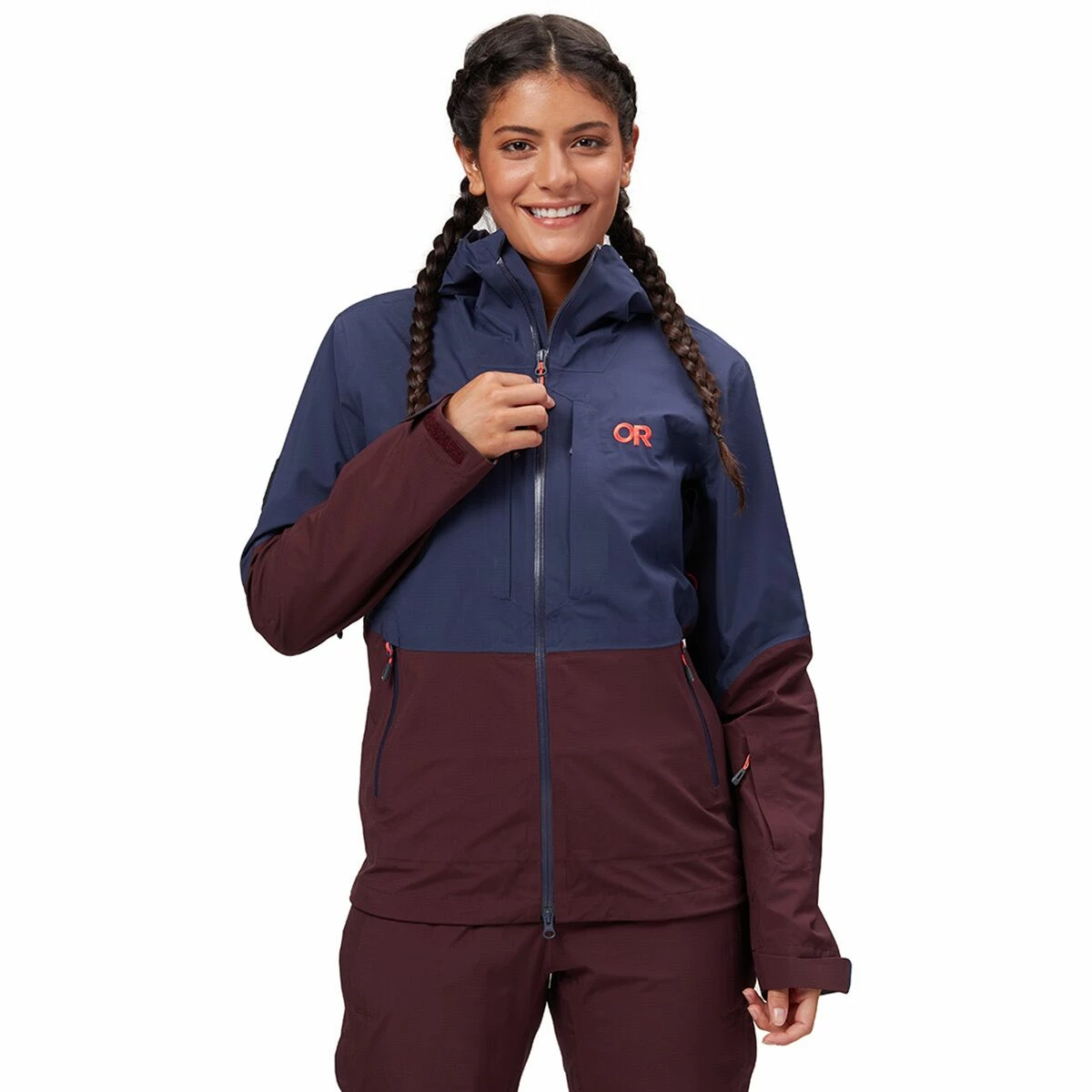 Low bulk, versatile, and stylish to boot, the Outdoor Research Carbide Jacket provides us with burly protection against the elements through long days exploring the resort. The 3-layer Pertex Shield construction, along with fully sealed seams, offers waterproof, breathable performance in some of winter’s worst storms, while the zippered underarm vents help us dump excess heat quickly after hiking for our turns. We like that the wire-brimmed Halo Hood provides reliable visibility when the snow is coming down sideways, and a powder skirt keeps snow from sneaking in when we take a tumble.