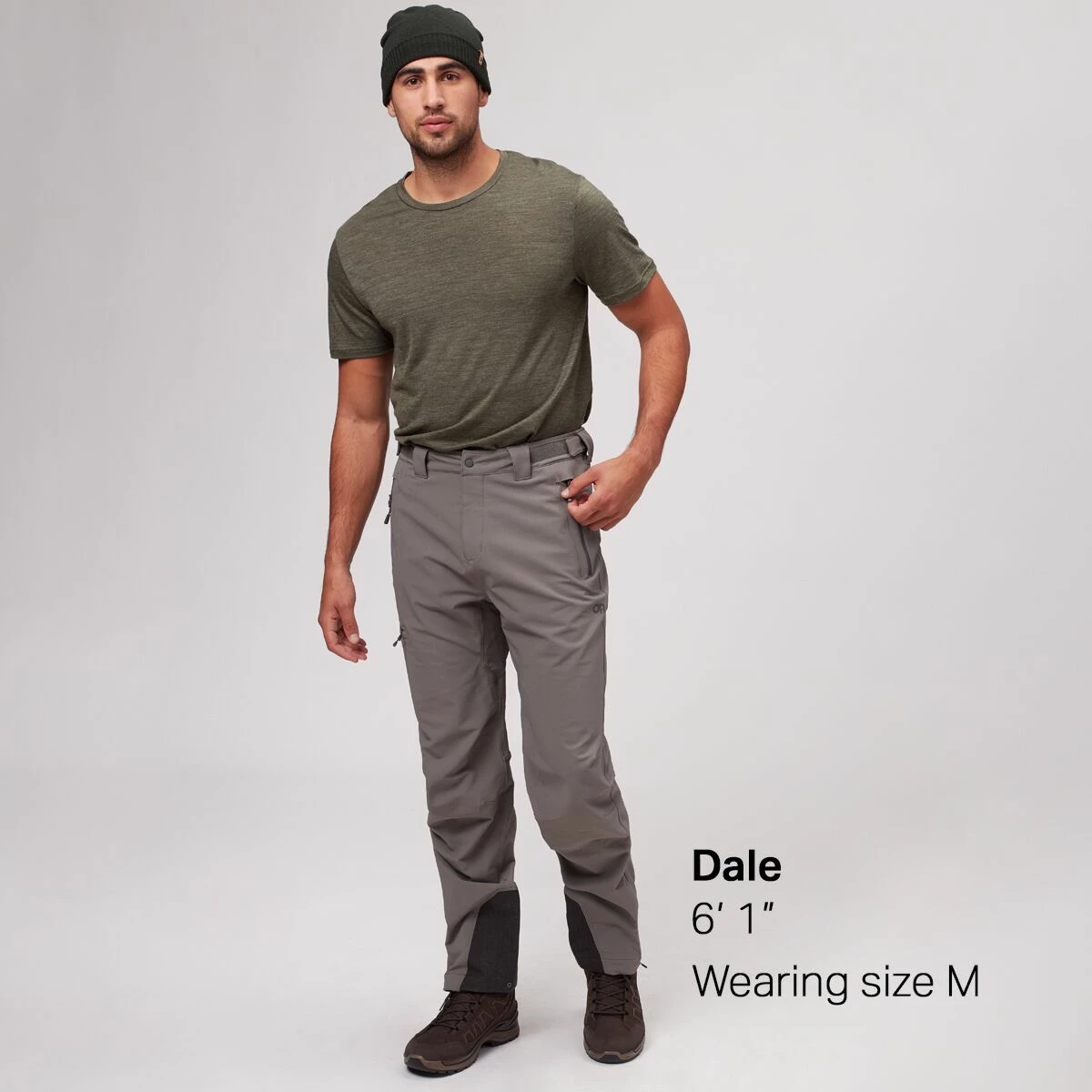 The Outdoor Research Cirque Softshell Pants are our go-to pants for all things alpine. Their tough, stretchy, and water-resistant fabric was made for our most rugged missions, whether they’re in the shoulder season or the dead of winter. Abrasion-resistant performance and a movement-mirroring stretch keep them prepared for mountainous terrain, while articulated knees and a gusseted crotch increase your natural comfort and range of motion. You’ll also be ready for backcountry ski tours thanks to the dedicated avalanche beacon pocket and durable scuff guards that resist damage from ski edges, boot rub, and poles.