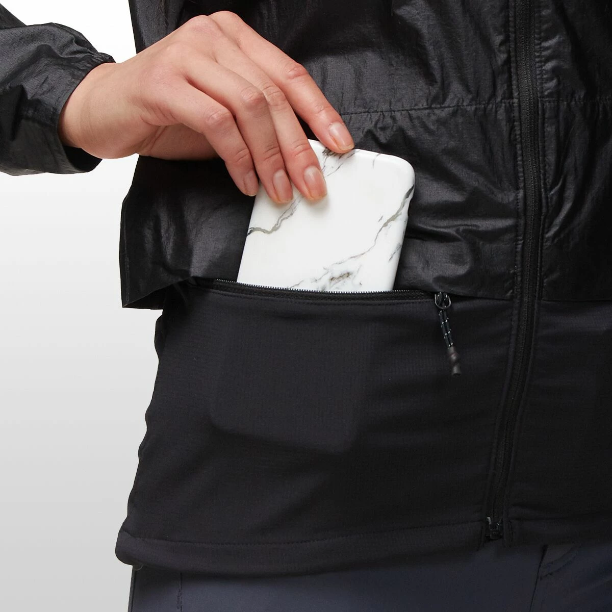 - Wind jacket ready to keep you covered on the trail