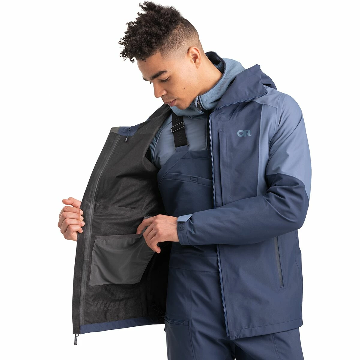 Us serious backcountry tourists seek the prestigious performance of the award-winning Skytour AscentShell Jacket. Developed with nothing but backcountry skiing and snowboarding in mind, this valued jacket offers waterproof protection that doesn’t sacrifice ventilation and breathability. Its advanced AscentShell 3L membrane shields us from the worst winter weather with a supple design, meaning we’re able to trek and carve through the day’s snow with more mobility and more comfort. If we really want the most out of the AscentShell, we grab a pair of Outdoor Research’s matching SkyTour bibs and clip them into the jacket for even better coverage.