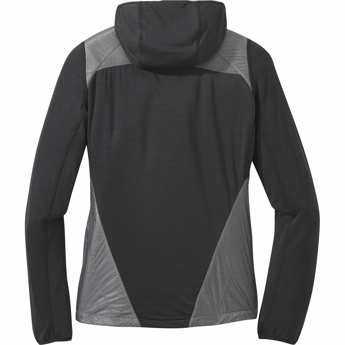 Zip up the Outdoor Research Vigor Hybrid Hooded Jacket under a technical shell as part of a insulating layering system for mid winter use, or over some layers as an outer jacket during shoulder seasons to provide yourself with lightweight warmth and comfort. The face fabric is made up of mini ripstop in the body and fleece in the sleeves and hood, this lightweight combination creates a warm, breathable, and non-restrictive feel. The VerticalX air insulation continues the breathable and lightweight theme by trapping heat with impressive loft. Finally key and carabiner loops as well as three zippered pockets keep all of your important items nearby.